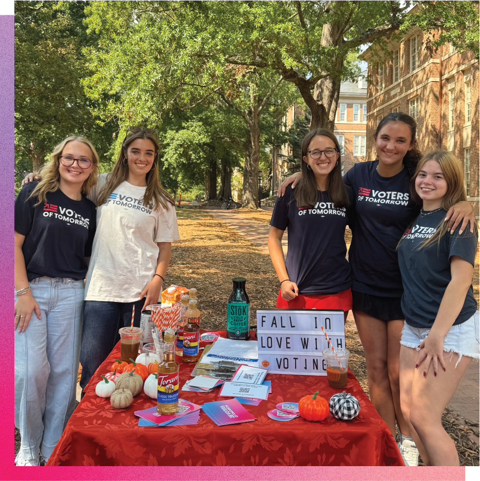 Young people are facing unprecedented attacks on our freedoms and our futures. Abortion rights, gun violence, the climate crisis, voter suppression, attacks on education rights—the list goes on. The issues our generation faces are devastating and overwhelming. That’s where we come in. Through our chapter network, Voters of Tomorrow is building the world that we deserve.